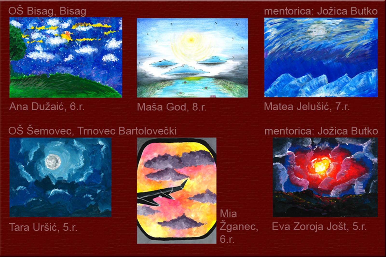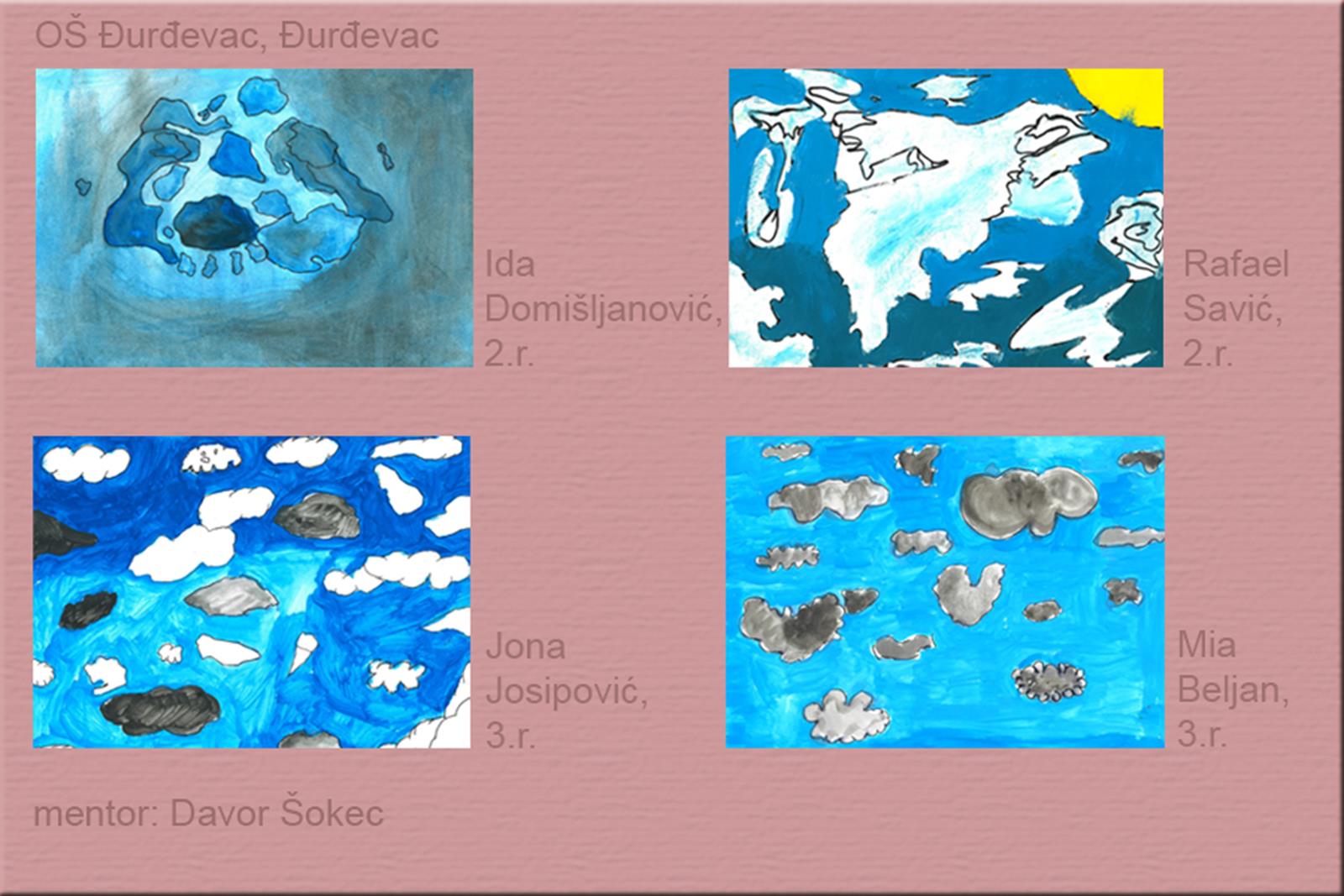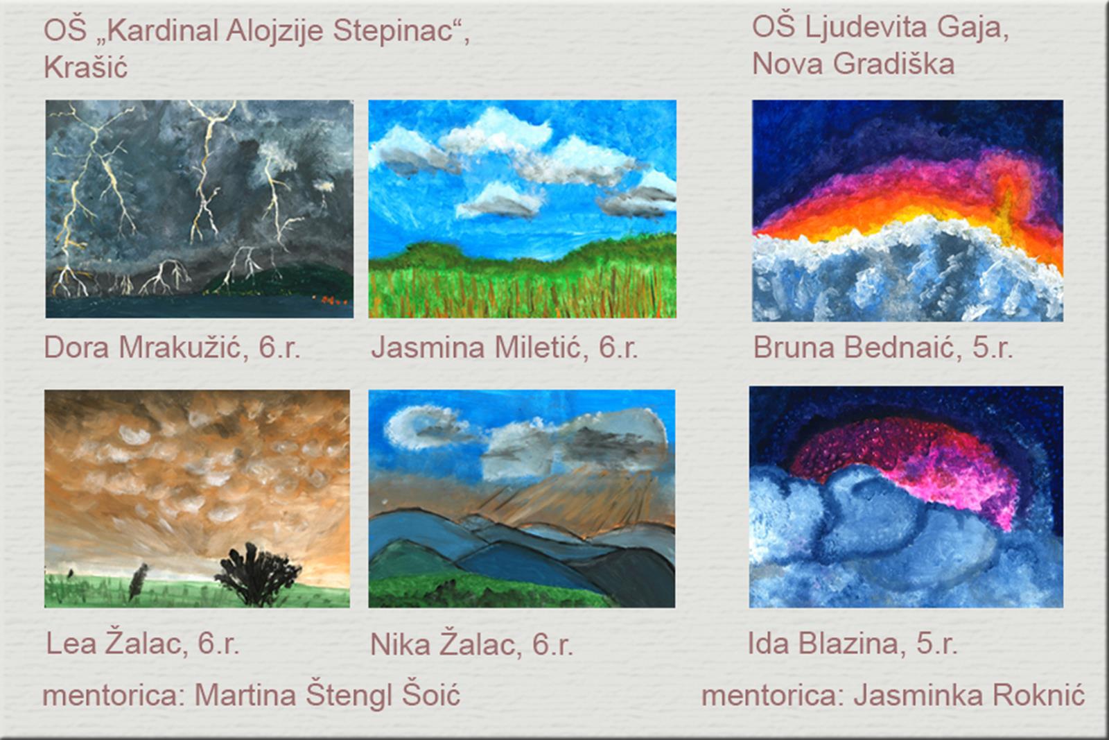Djeca su svoje vizije pretočila u različite likovne tehnike – od kolaža, akvarela, tempere i grafike, do fotografije, batika, instalacija, skulptura i zajedničkih radova. U tom šarenom i raznolikom nizu pristupa otkrivamo kako svaki pogled prema oblacima postaje osobna interpretacija, igra i istraživanje.