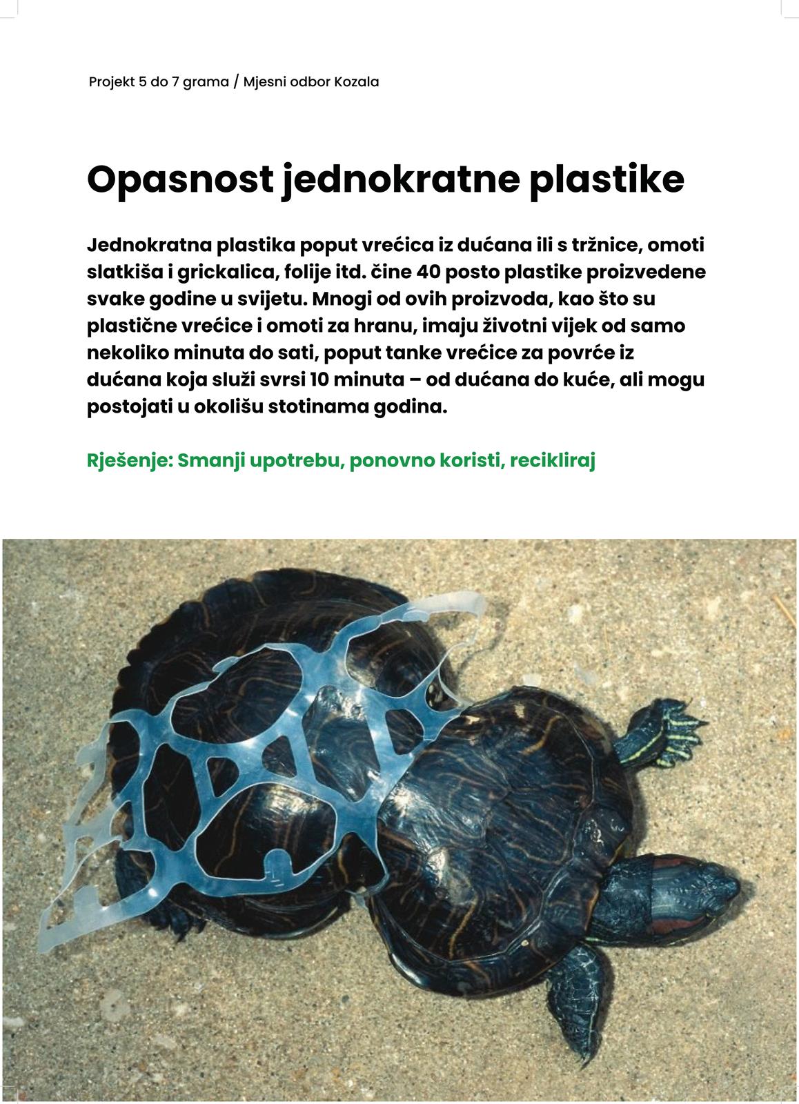 Mi kao pojedinci imamo značajan utjecaj na prekomjerno korištenje i odbacivanje plastike koja najčešće završi u prirodi pa promjena treba krenuti od nas samih.