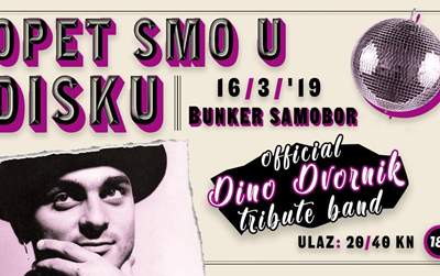 "OPET SMO U DISKU" • Official Dino Dvornik Tribute Band Subota • 16/03/19 • 22h Ulaznice 20/40kn: ONLINE - https://www.ulaznice.hr/web/event/86/380 ili u Bunkeru