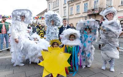 Povorka osnovnih škola: OŠ Bogumila Tonija, OŠ Mihaela Šiloboda, OŠ Milana Langa, OŠ Rude, OŠ Samobor