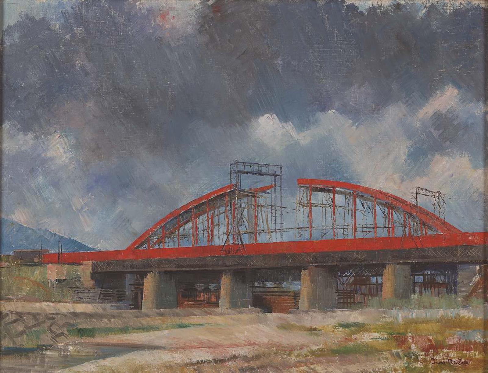 Savski most u izgradnji Ive Režeka iz 1939. godine svojom suprotstavljajućom simbolikom boja, plavo-bijelog neba s oblacima i crvene konstrukcije željeznog mosta, simbola novog doba industrijskog razvoja, neposredan je komentar slikarevog odnosa prema novoj životnoj stvarnosti. Sliku tako možemo čitati u kolorističko-simboličkom smislu opozicije crveno – plavo/bijelo – materijalno nasuprot refleksivnog.