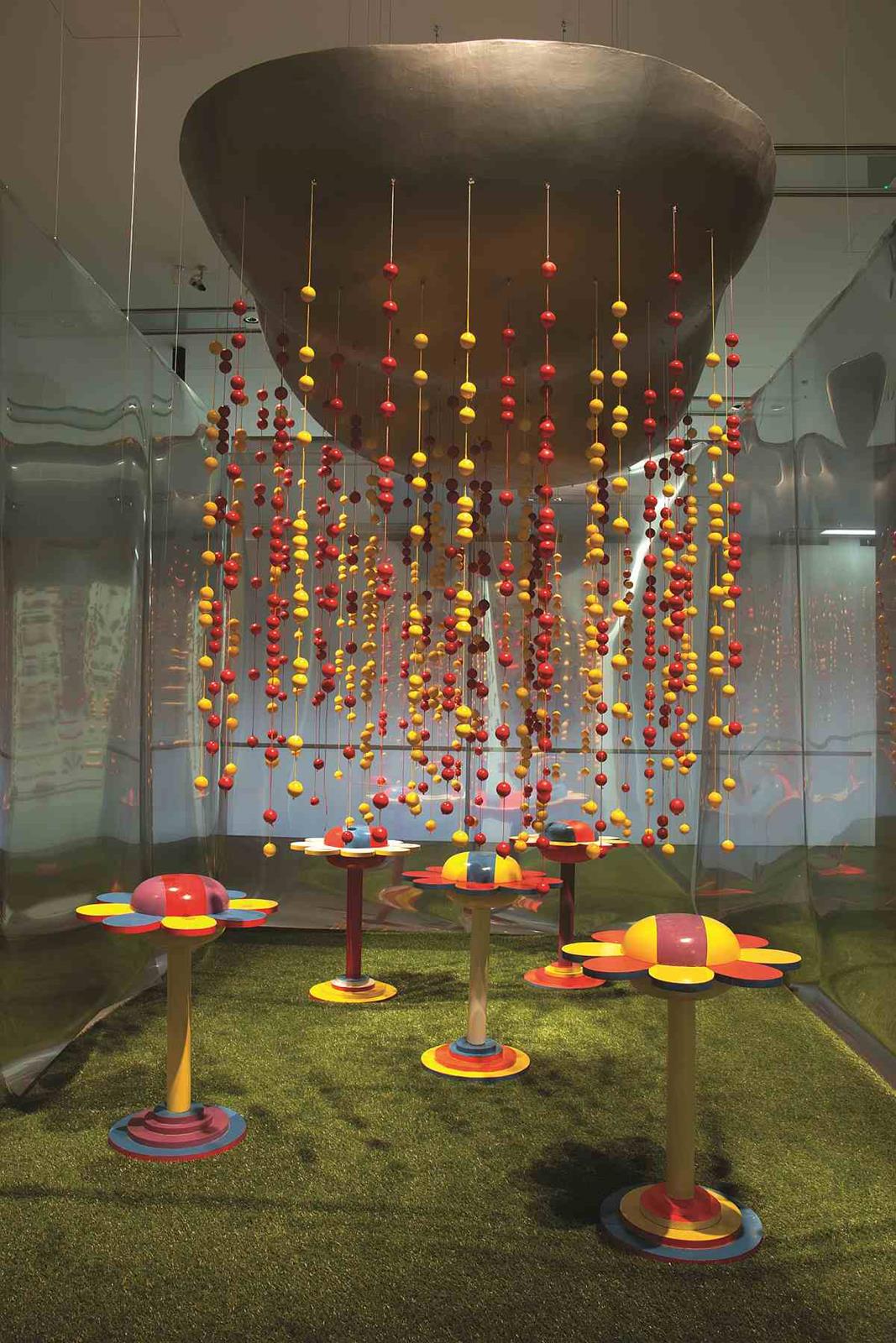 Najveseliji kišni oblak u hrvatskoj umjetnosti, po našem mišljenju, nastao je šezdesetih godina prošlog stoljeća, a njegov autor je vječno zaigrani, beskrajno kreativni umjetnik Miroslav Šutej. Remek-djelo pop-arta njegova je ambijentalna instalacija Kiša, 1967., rađena za izložbu Trigon '67 u Grazu i rekonstruirana za retrospektivnu izložbu u Muzeju suvremene umjetnosti u Zagrebu 2013., kada je i nastala fotografija koju prezentiramo na izložbi. Kišu u ovom ambijentu predstavljaju nizovi šareno obojanih teniskih loptica koje padaju sa sivo obojanog oblaka rađenog od polistirola, a posjetitelj se kreće ispod tog kišnog oblaka po jarko zelenoj umjetnoj travi među uvećanim šarenim cvjetovima izrađenim od obojanog drva – ambijent kao iz neke hipijevske fantazije u kojem se osjećate razdragano!