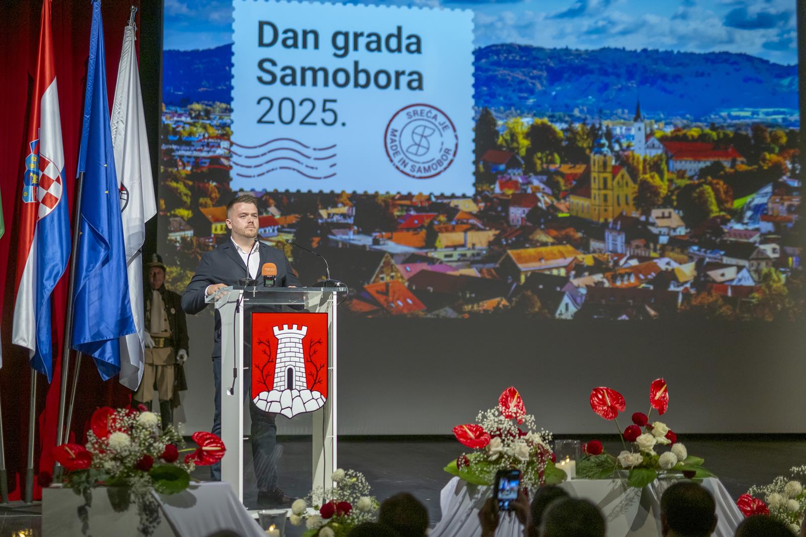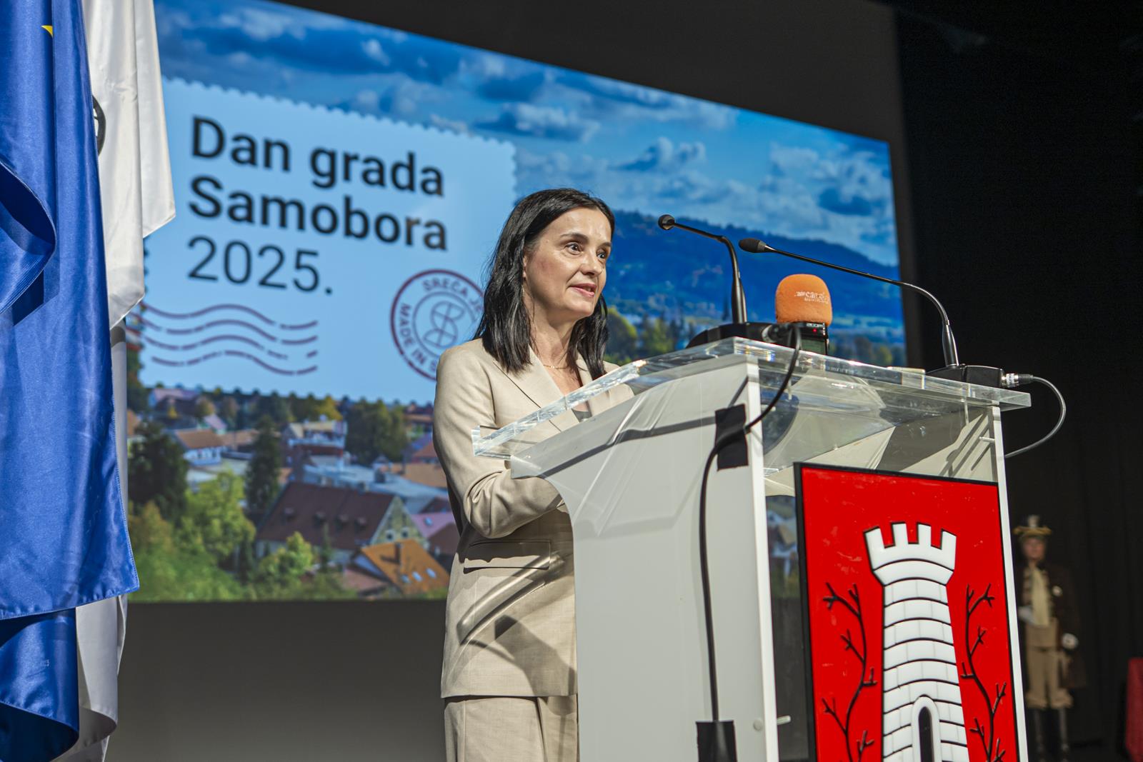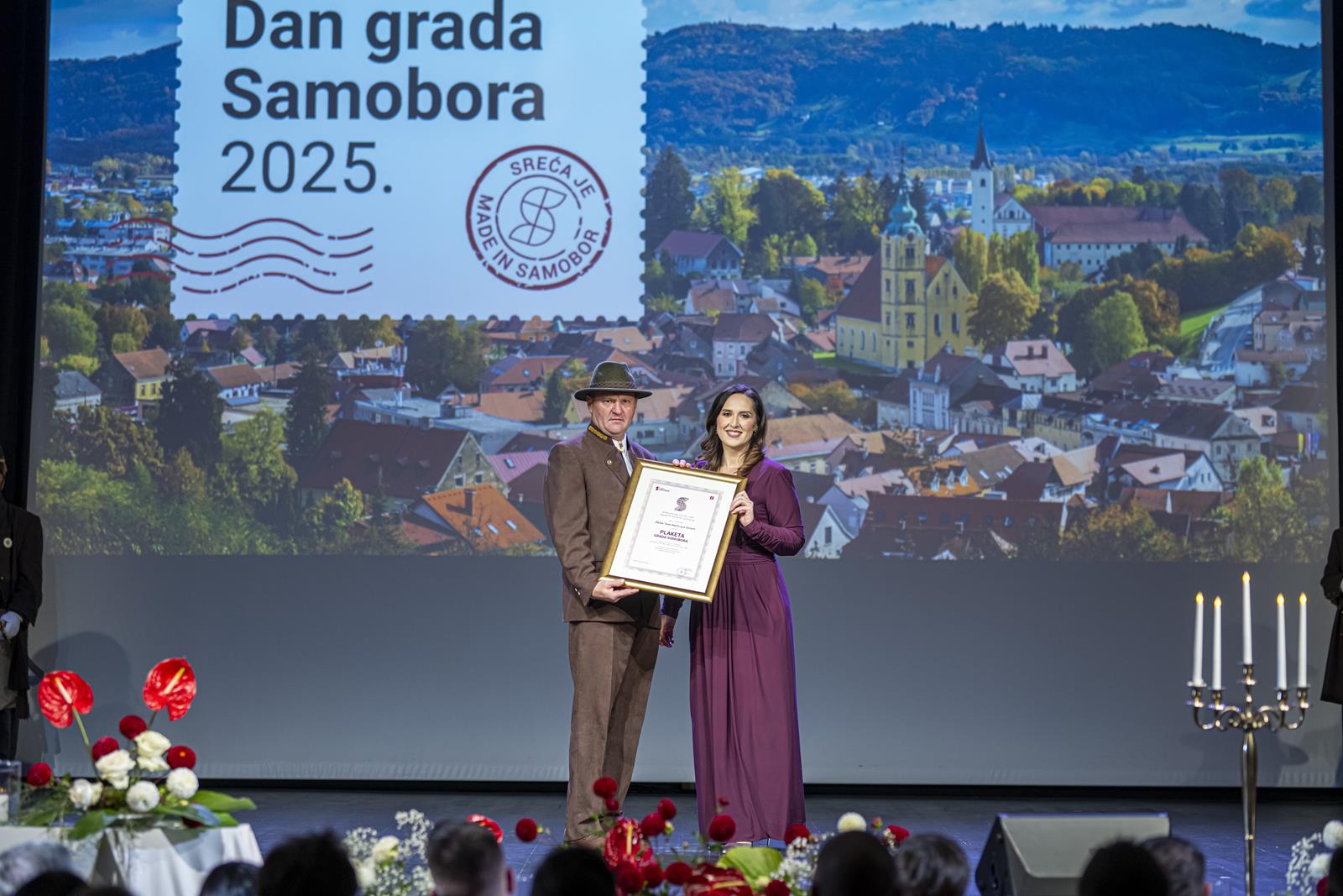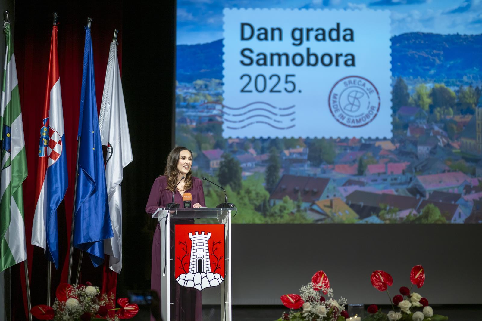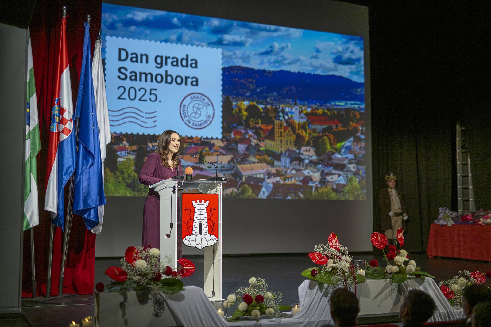 Gradonačelnica Grada Samobora Petra Škrobot pozdravila je sve koji su se odazvali svečanoj sjednici povodom Dana grada. Istaknula je kako svake godine ovaj dan budi ponos, zahvalnost i emociju jer živimo u gradu koji je kroz sve ove godine ostao vjeran sebi. „Samobor je grad koji se ne mjeri kvadratima i brojkama. On se mjeri srcem. Mjeri se osmijehom na licima ljudi, dječjim koracima koji odjekuju našim ulicama i pogledima koji se prepoznaju bez riječi. To je naš Samobor, grad koji ima dušu i priču, grad koji nas uči da zajedništvo i ljubav mogu mijenjati svijet.“, poručila je gradonačelnica Škrobot. Napomenula je kao su pred nama godine novih iskoraka, novi projekti, ideje, i nova poglavlja koja tek pišemo zajedno. „Drage Samoborke i Samoborci, ponosna sam na naš grad, ali još više na vas. Na vašu energiju, dobrotu, otvorenost i optimizam. Na to što uvijek pronađemo snagu da idemo naprijed zajedno, bez podjela, s vjerom da možemo i zaslužujemo najbolje. Danas ćemo dodijeliti priznanja onima koji su svojim radom, znanjem i srcem zadužili naš grad. Hvala im što nas inspiriraju i podsjećaju koliko vrijedi upornost, predanost i ljubav prema onome što radimo. Na kraju, želim da ovaj dan provedemo s osmijehom i ponosom. Da proslavimo naš Samobor, grad koji nije samo mjesto na karti nego osjećaj, pripadnost i način života. Grad koji volimo, grad koji nas povezuje, grad kojem pripadamo“, zaključila je gradonačelnica.