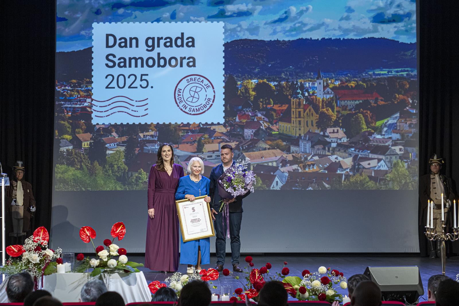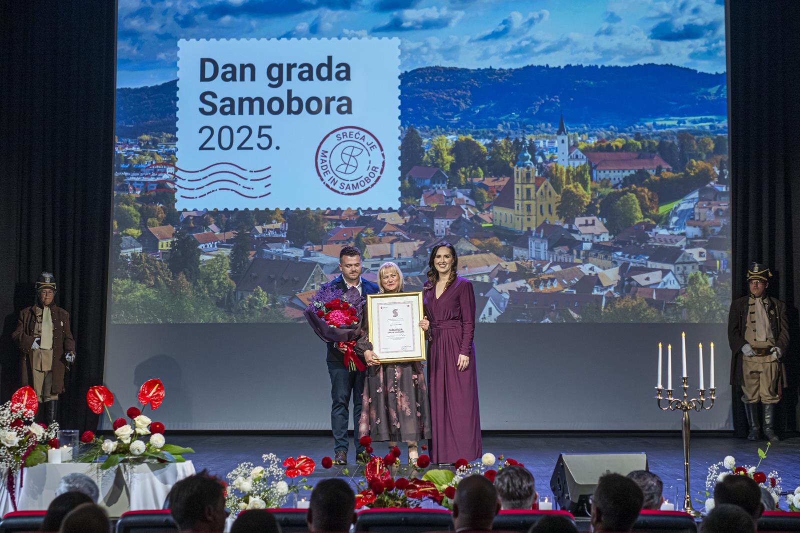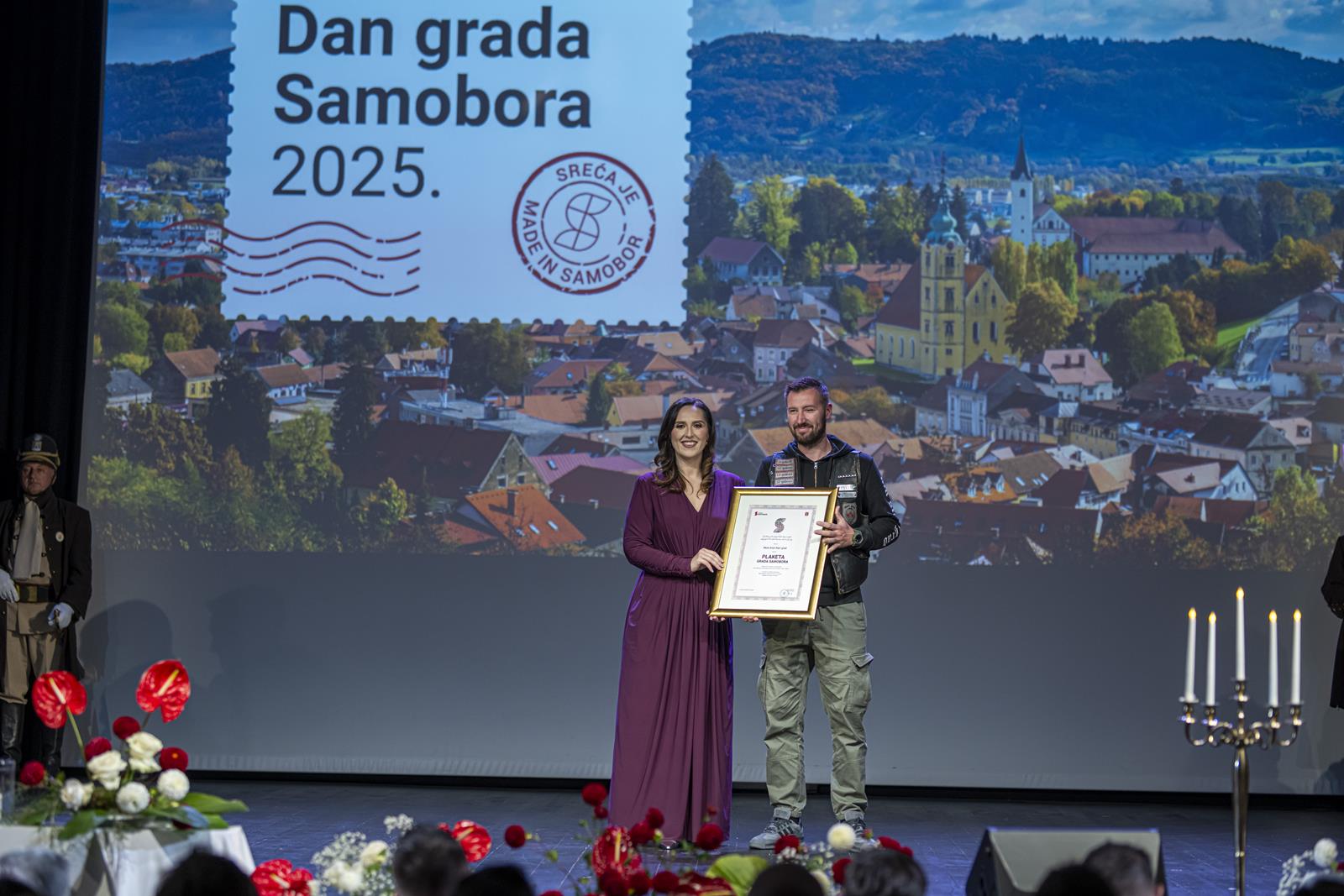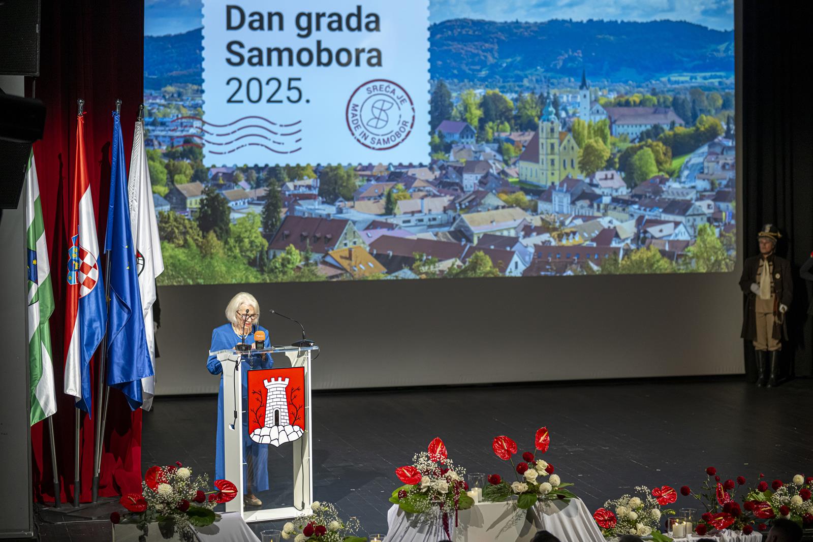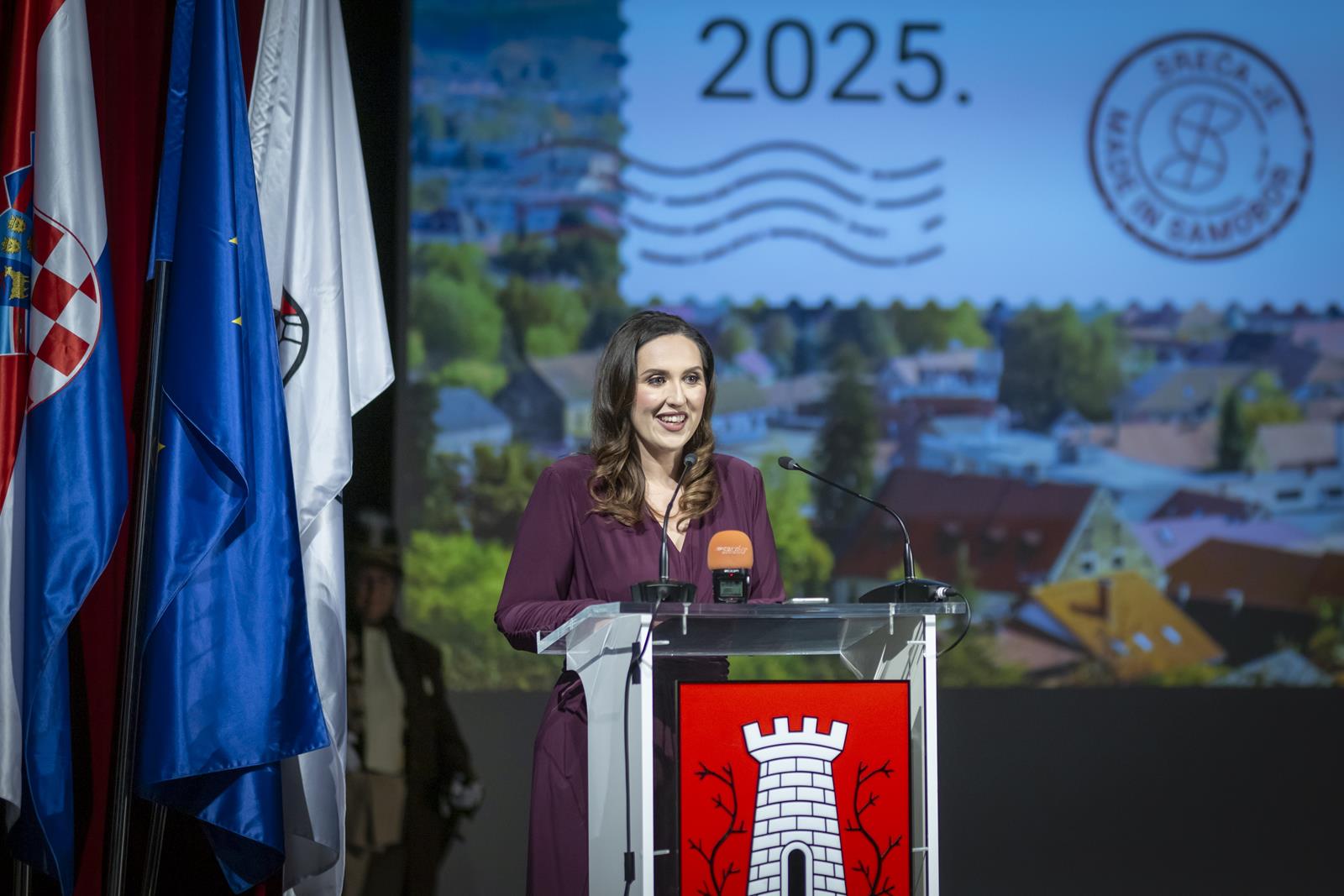 Gradonačelnica Grada Samobora Petra Škrobot pozdravila je sve koji su se odazvali svečanoj sjednici povodom Dana grada. Istaknula je kako svake godine ovaj dan budi ponos, zahvalnost i emociju jer živimo u gradu koji je kroz sve ove godine ostao vjeran sebi. „Samobor je grad koji se ne mjeri kvadratima i brojkama. On se mjeri srcem. Mjeri se osmijehom na licima ljudi, dječjim koracima koji odjekuju našim ulicama i pogledima koji se prepoznaju bez riječi. To je naš Samobor, grad koji ima dušu i priču, grad koji nas uči da zajedništvo i ljubav mogu mijenjati svijet.“, poručila je gradonačelnica Škrobot. Napomenula je kao su pred nama godine novih iskoraka, novi projekti, ideje, i nova poglavlja koja tek pišemo zajedno. „Drage Samoborke i Samoborci, ponosna sam na naš grad, ali još više na vas. Na vašu energiju, dobrotu, otvorenost i optimizam. Na to što uvijek pronađemo snagu da idemo naprijed zajedno, bez podjela, s vjerom da možemo i zaslužujemo najbolje. Danas ćemo dodijeliti priznanja onima koji su svojim radom, znanjem i srcem zadužili naš grad. Hvala im što nas inspiriraju i podsjećaju koliko vrijedi upornost, predanost i ljubav prema onome što radimo. Na kraju, želim da ovaj dan provedemo s osmijehom i ponosom. Da proslavimo naš Samobor, grad koji nije samo mjesto na karti nego osjećaj, pripadnost i način života. Grad koji volimo, grad koji nas povezuje, grad kojem pripadamo“, zaključila je gradonačelnica.