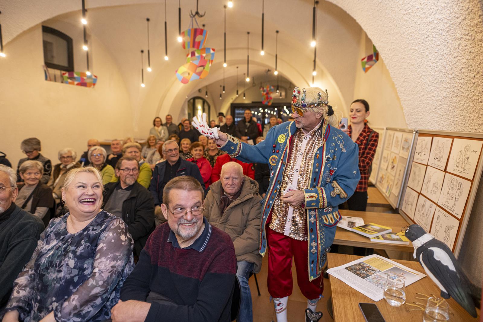 Zoran Perović je prelistao oba izdanja fašničkih novina pred brojnim posjetiteljima, a promociju su šalama začinili fašnički likovi: Princ, Sraka i Sudac.