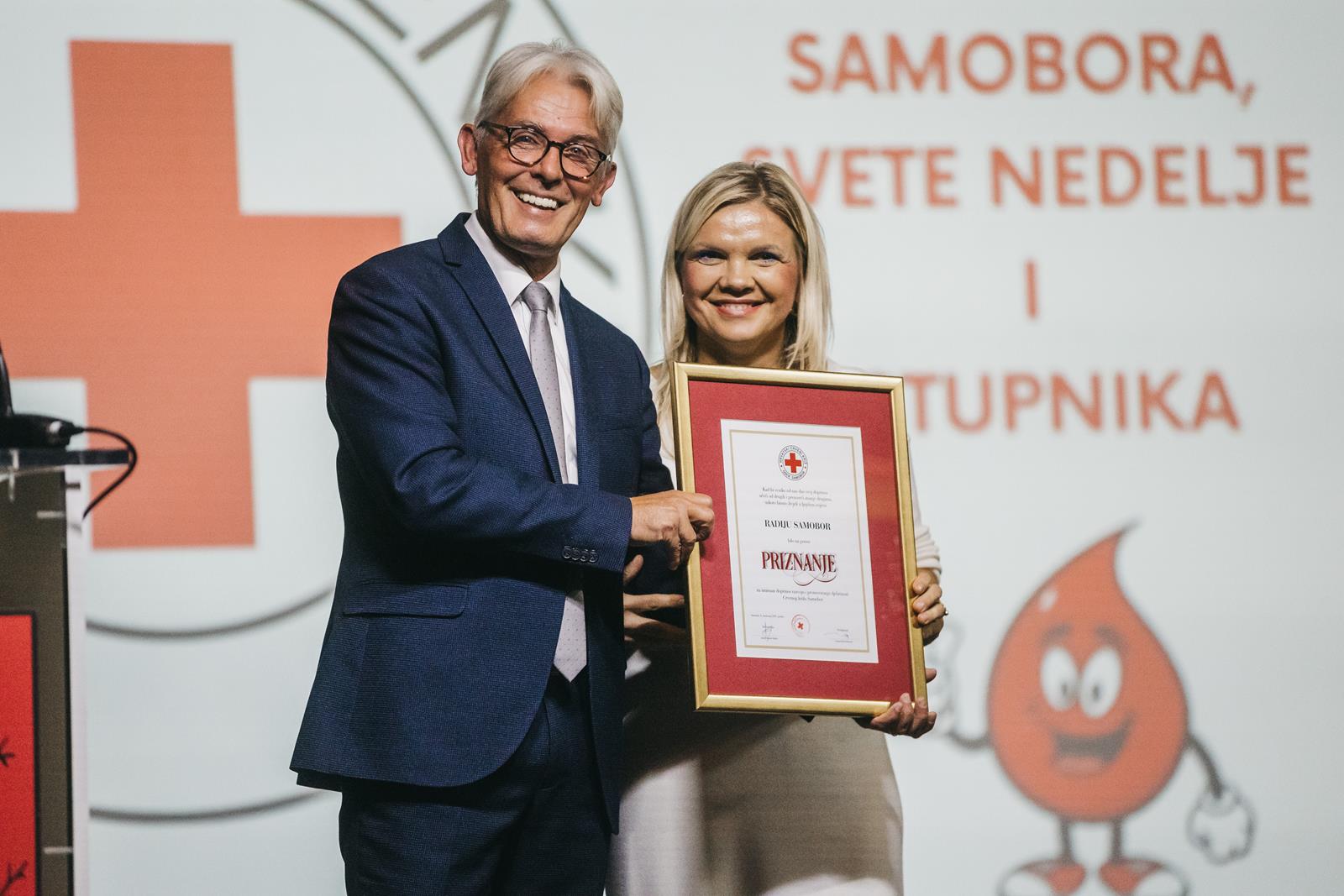 Gradsko društvo Crvenog križa Samobor dodijelilo je sinoć u Centru za mlade Bunker zahvalnice i priznanja darivateljima krvi koji kontinuirano nesebično daruju krv i time spašavaju tuđe živote. Zahvalnice je primilo više od 150 darivatelja koji su svoje jubilarno darivanje ostvarili u ovoj i prošloj godini, tj. oni koji su krv darovali 20, 25, 30, 40, 50, 75, 100, 125 i 150 puta. Zahvalnice su primile i obitelji čiji su svi članovi dio zajednice onih koji neprekidno u razdoblju od pet godina daruju krv kao i oni darivatelji koji zbog zdravstvenih ili dobnih razloga više ne mogu darivati krv. Svaka doza darovane krvi znači priliku za novi život naglašeno je više puta tijekom svečanosti.
