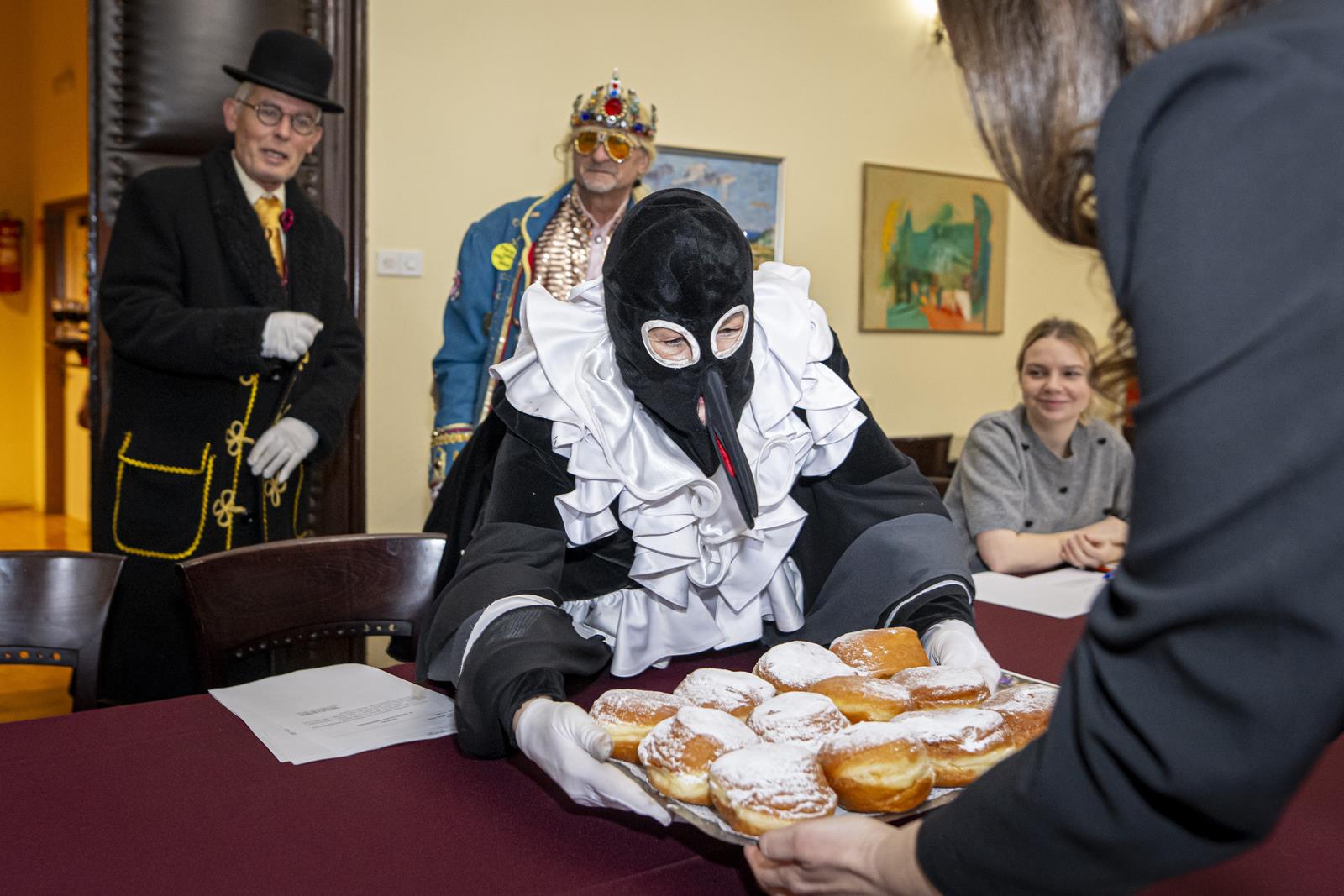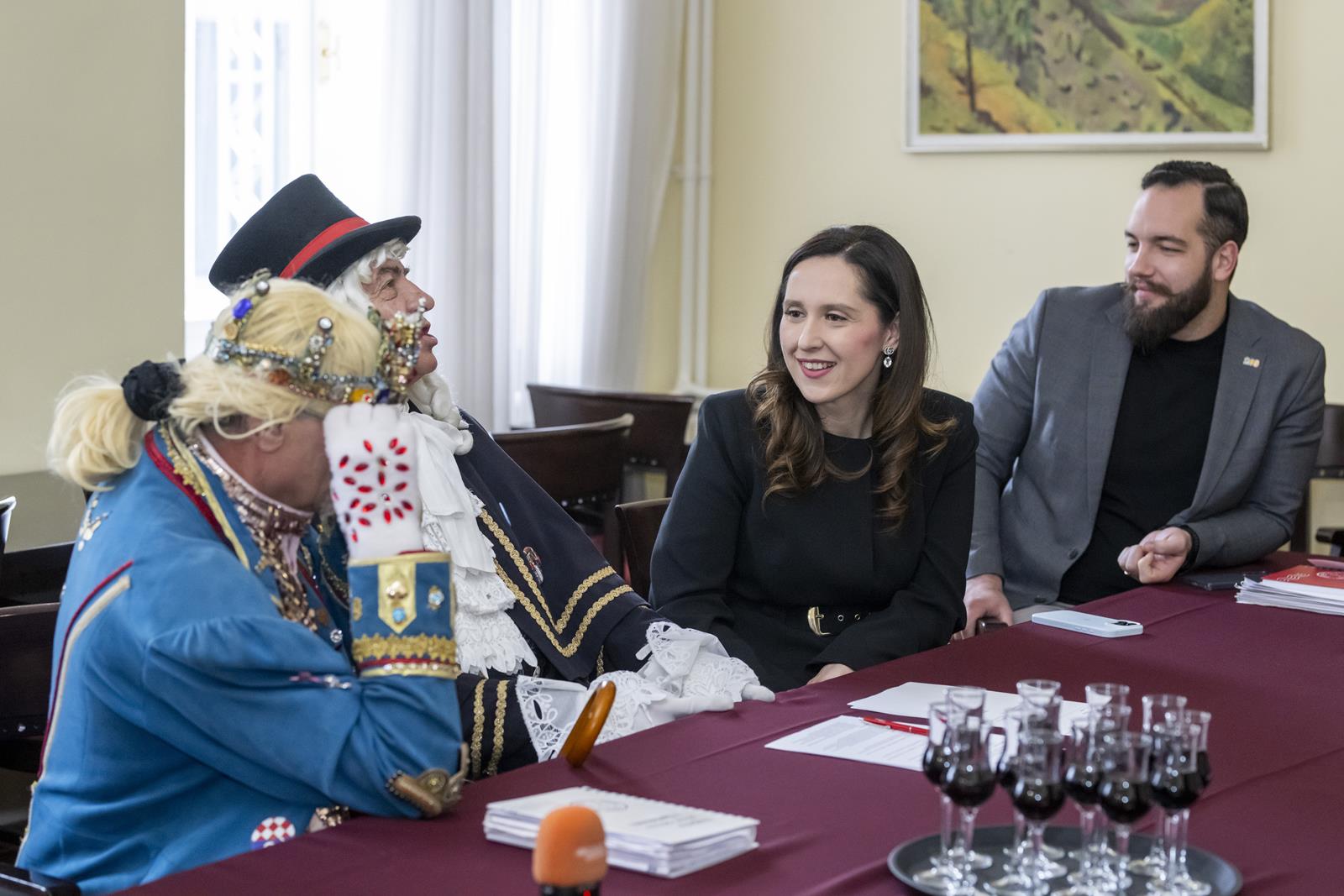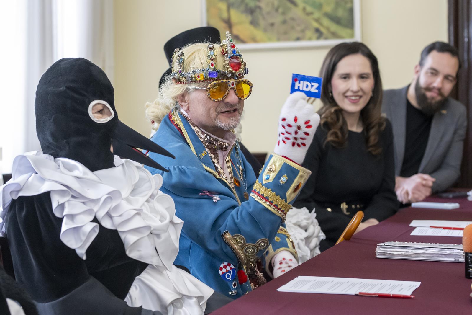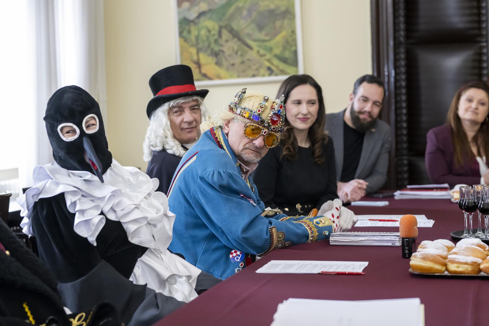 Zajednički kolegij Fašničke vlade s privremeno bivšim čelnicima i pročelnicima Grada održan je danas u gradskoj vijećnici. Princ Fašnik, Princeza Sraka, Fiškal i Sudac detaljno su „proučili” dnevni red te zaključili da nisu došli delati, već popiti bermet, pojesti krafne i čuti što muči gradske pročelnike.