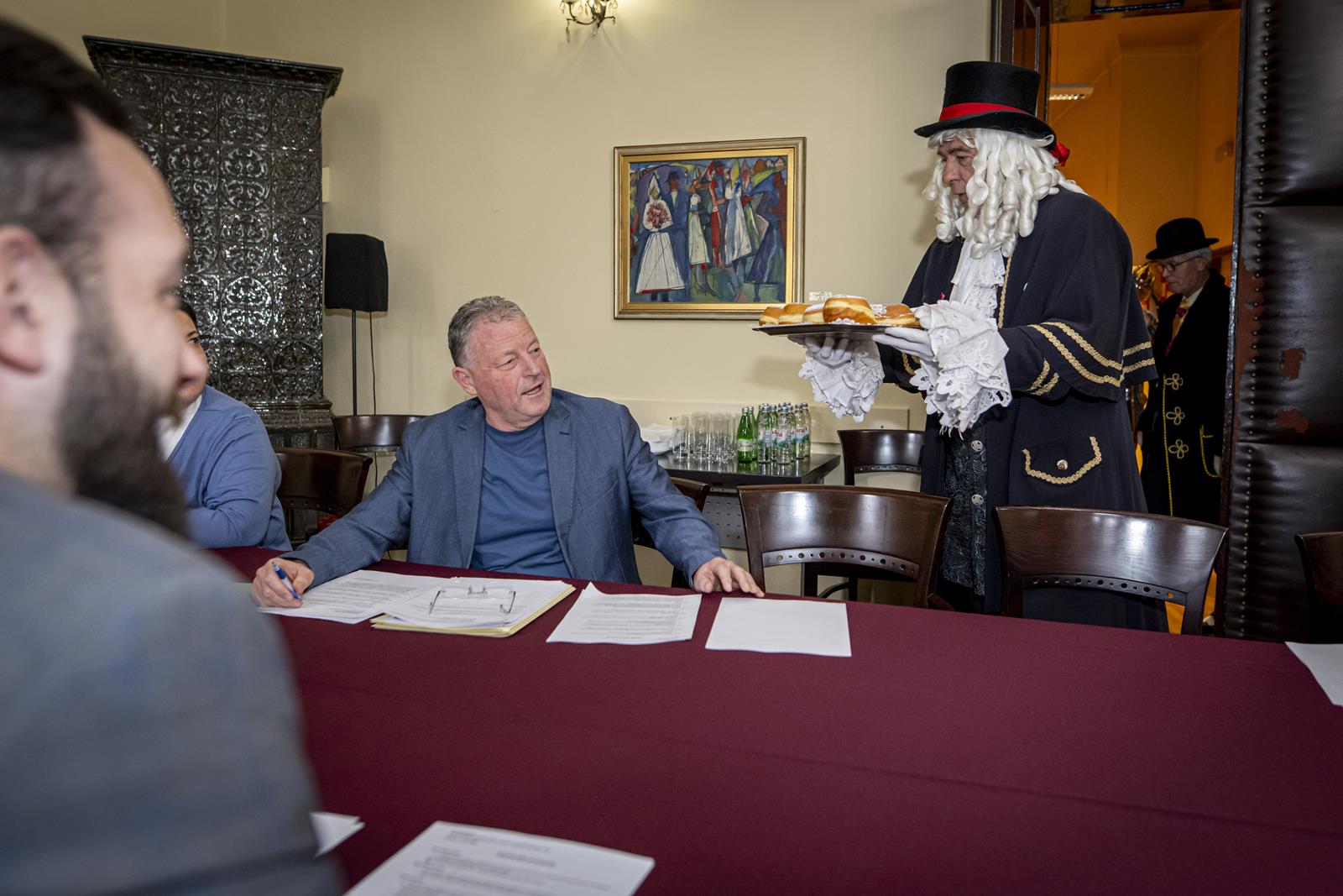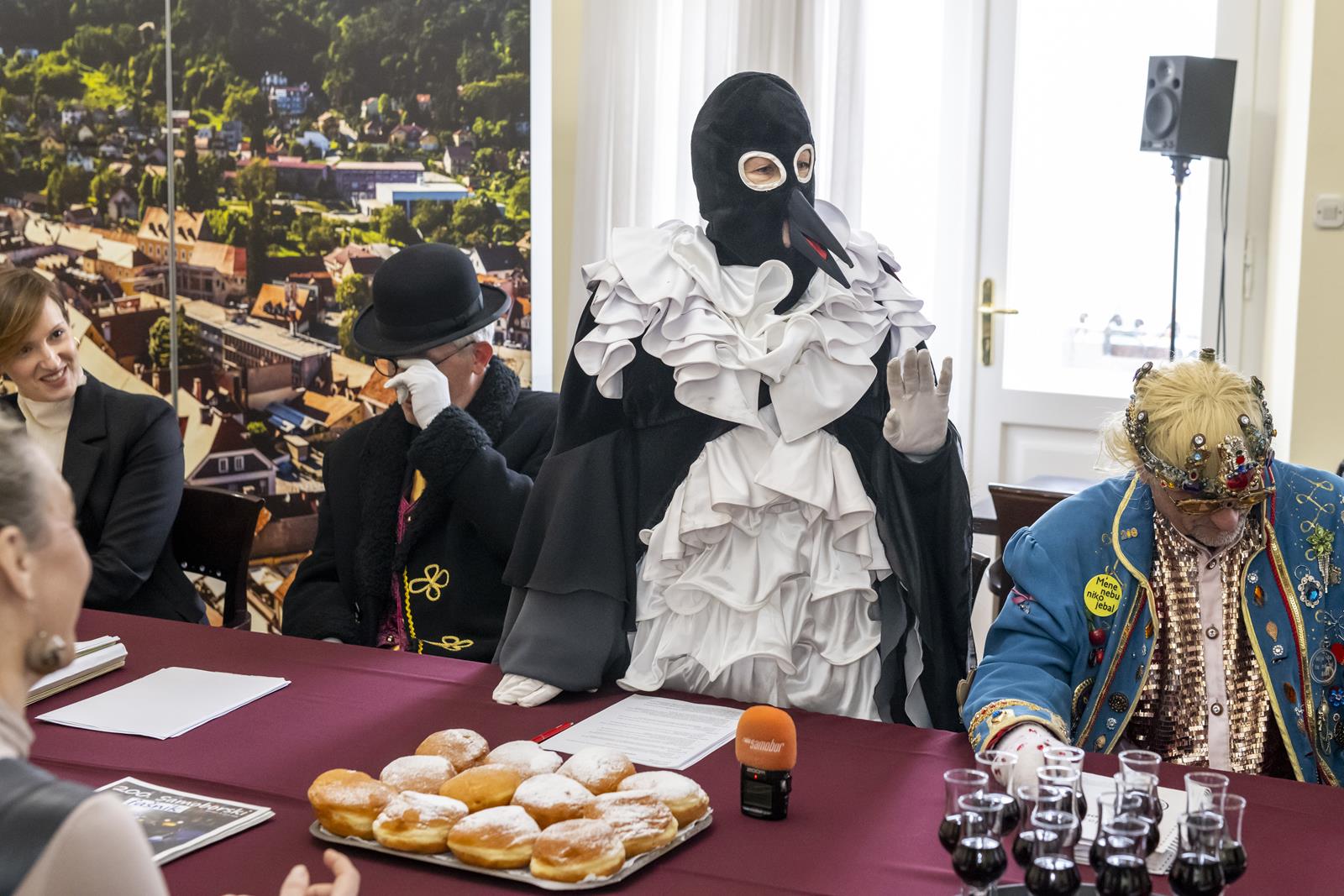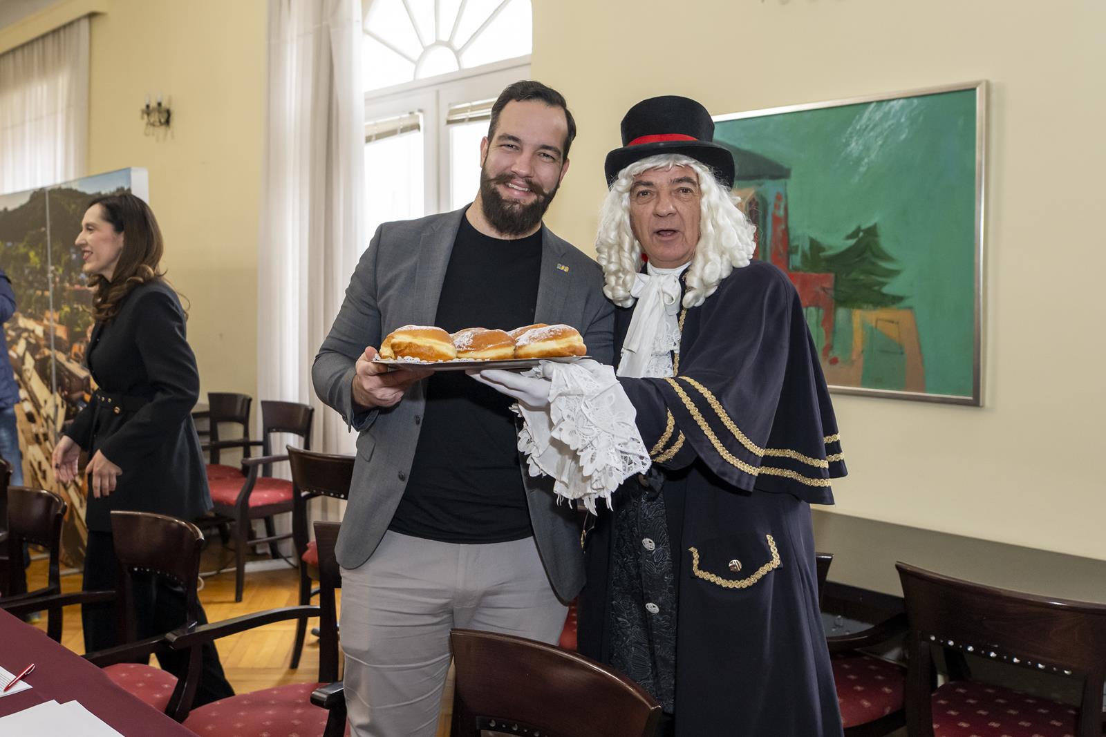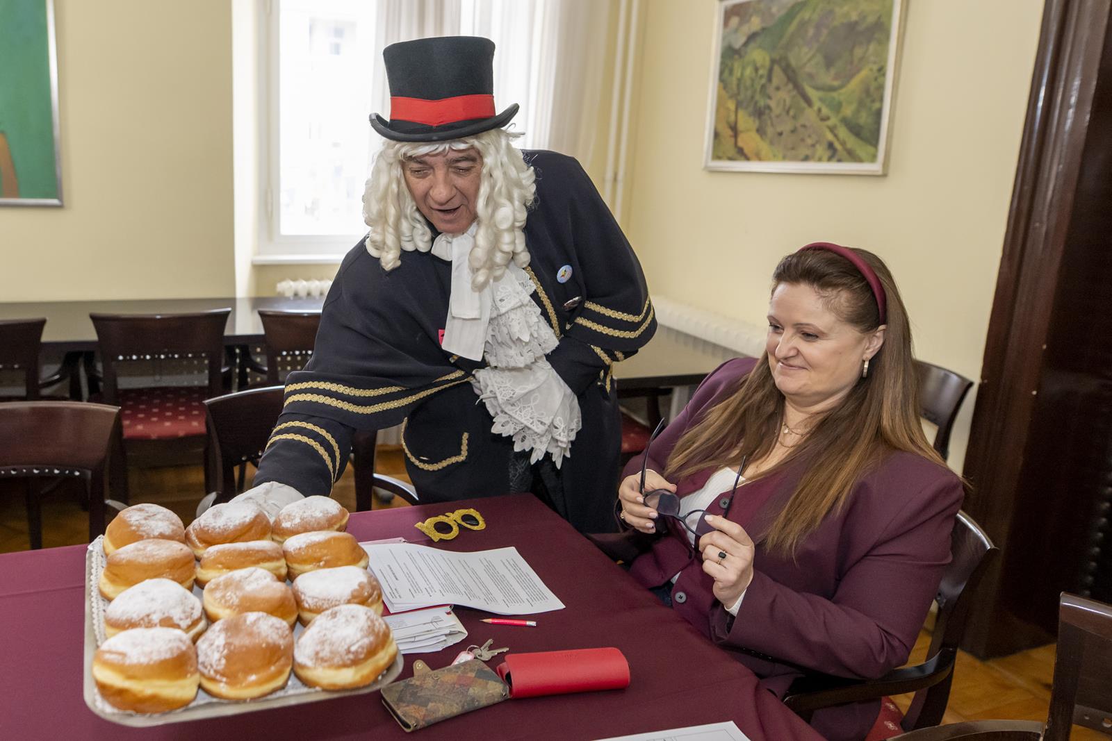 Zajednički kolegij Fašničke vlade s privremeno bivšim čelnicima i pročelnicima Grada održan je danas u gradskoj vijećnici. Princ Fašnik, Princeza Sraka, Fiškal i Sudac detaljno su „proučili” dnevni red te zaključili da nisu došli delati, već popiti bermet, pojesti krafne i čuti što muči gradske pročelnike.