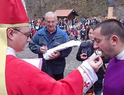 Krštenje mošta ispred Rudnika sveta Barbara.