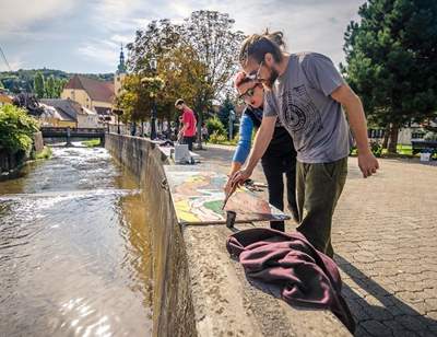 Samoborski ULUS-ovci crtaju priče kod kućice za knjige na Trgu Matice hrvatske.