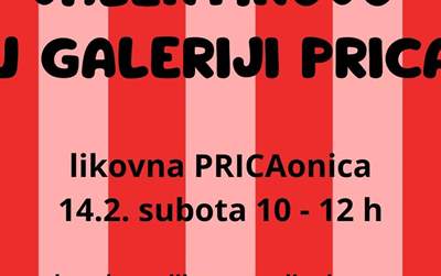 Povodom Valentinova pozivamo vas na likovnu radionicu za djecu i odrasle koja će se održati u subotu, 14. 2. 2026., od 10 do 12 sati u prostoru Galerije Prica.