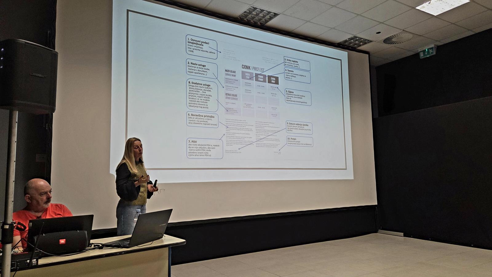 Posebna pozornost posvećena je temi PDV identifikacijskog broja i obračunu PDV-a na provizije, što je izazvalo veliki interes među sudionicima. Edukacija je trajala tri školska sata, a nakon službenog dijela predavanja, polaznici su imali priliku postaviti pitanja i razmijeniti iskustva s predavačima i ostalim iznajmljivačima.